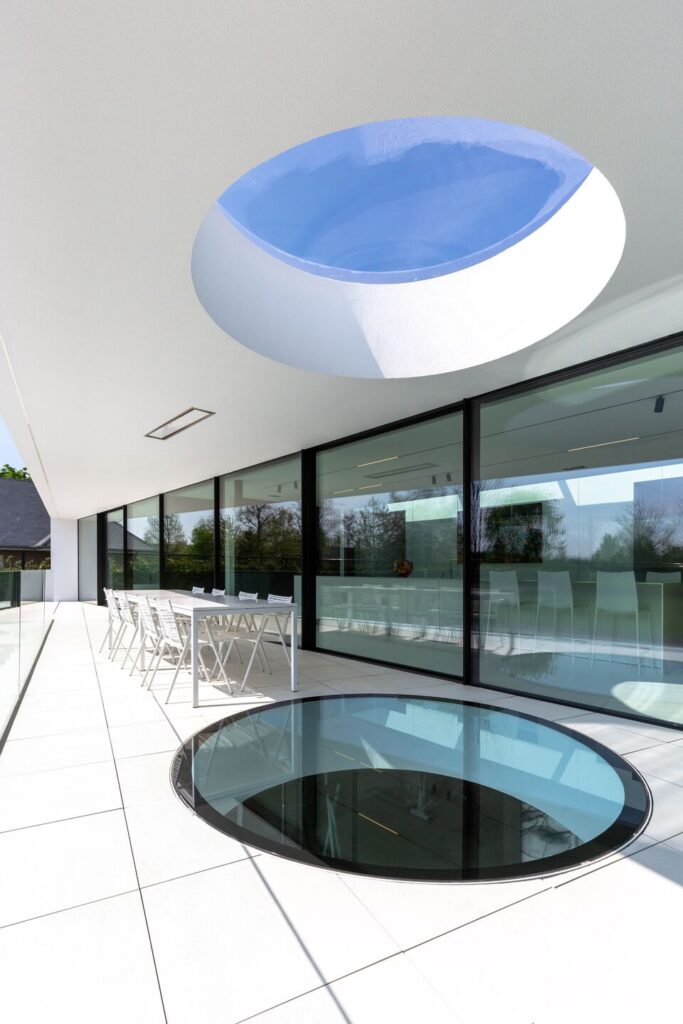 Het unieke effect van een glazen vloer kan een ruimte transformeren door het licht op een manier te verspreiden die met traditionele vloermaterialen niet te bereiken is. Het glas creëert een gevoel van openheid en continuïteit, waardoor de ruimte niet alleen visueel groter lijkt, maar ook een dynamisch en speels karakter krijgt.